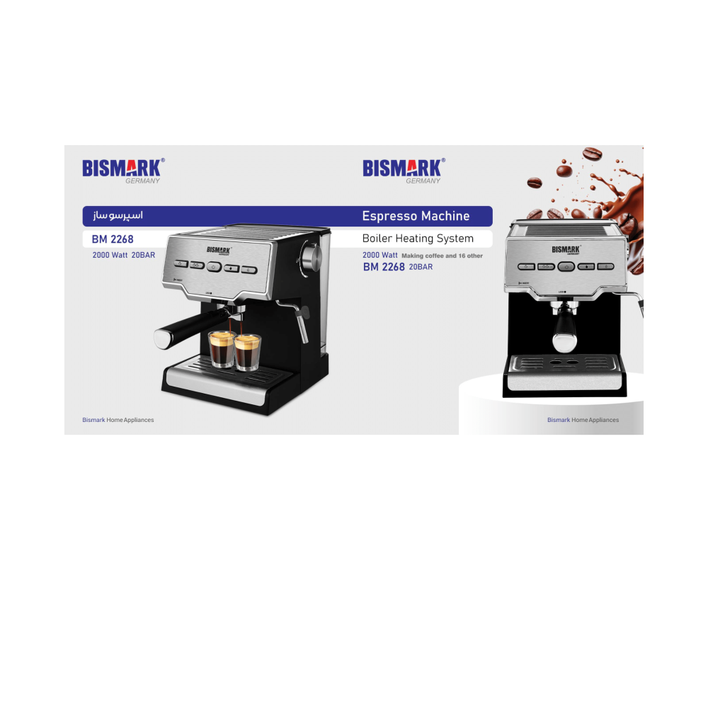 اسپرسو ساز بیسمارک مدل BM2266 (با مخزن شیر) نوع: اسپرسو ساز بیسمارک مدل BM2266 (با مخزن شیر) برند: بیسمارک (Bismark)
